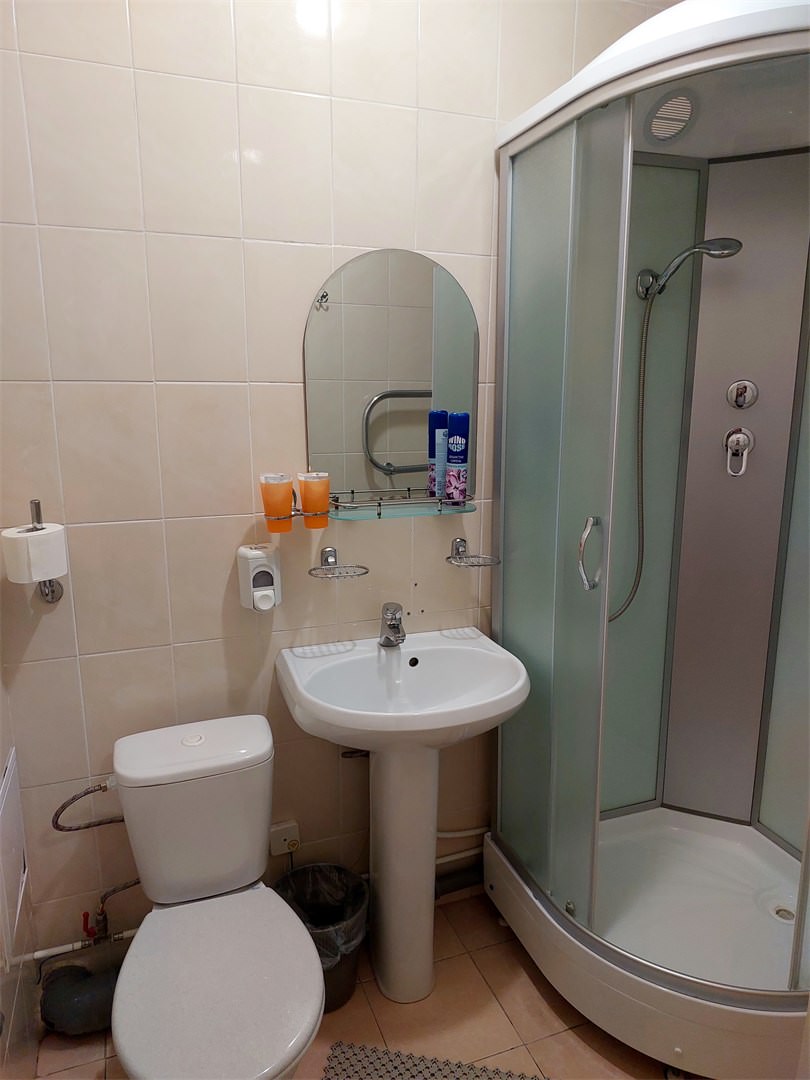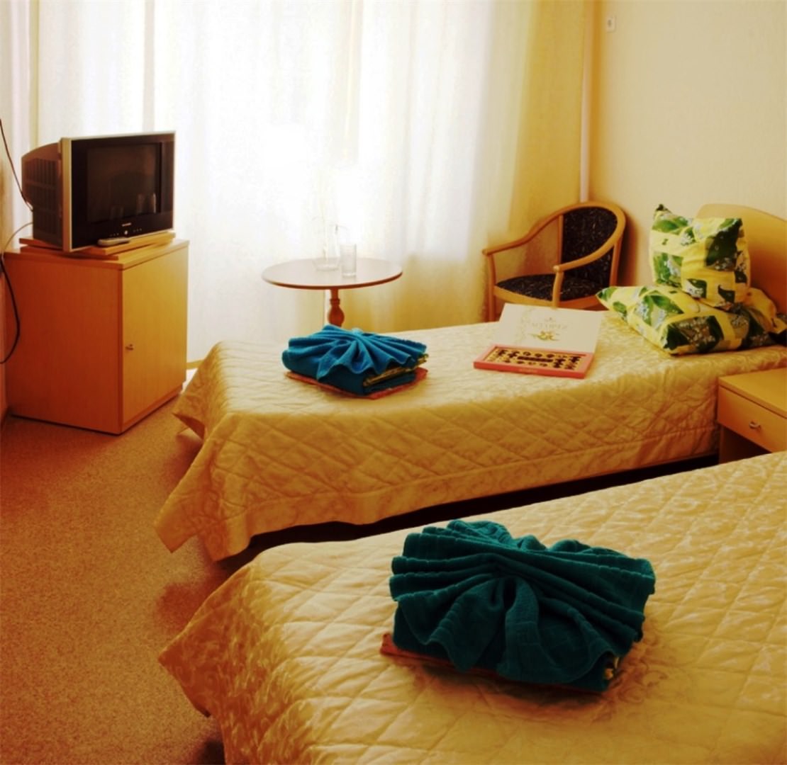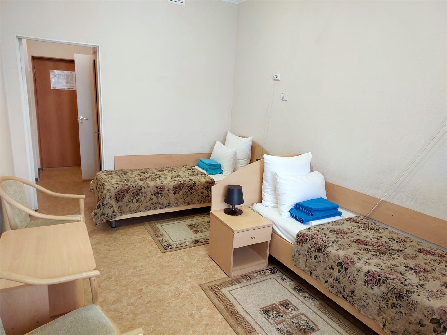 Площадь номера - 17 кв.м. 2 осн. места. 1 доп. место. Мебель: кровати односпальные, прикроватные тумбочки, стол, стулья, шкаф. Оборудование: телевизор, холодильник. Санузел: с душем, туалетные принадлежности. Сервис: Wi-Fi бесплатно, смена полотенец, смена постельного белья, уборка номера.